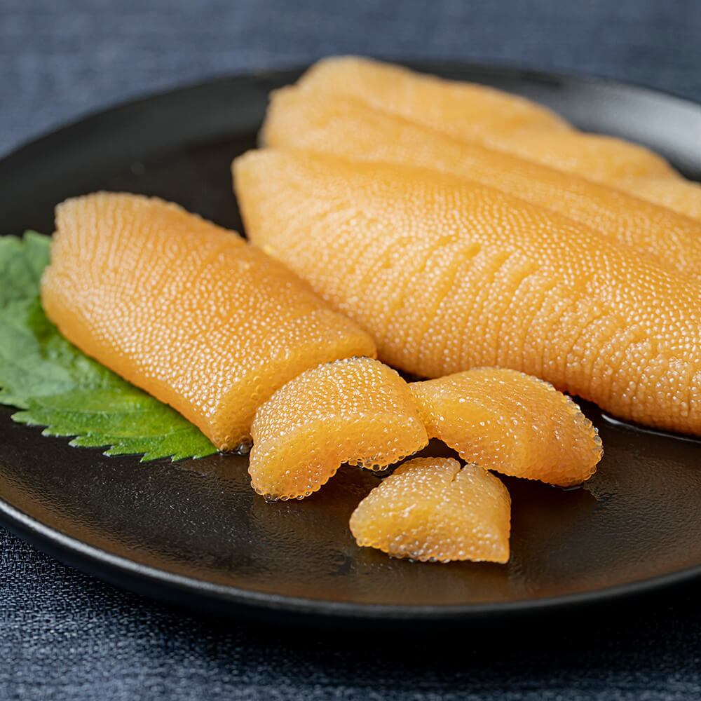 塩抜きの必要がなく、解凍後そのままお楽しみいただけます。ポリポリと、そして粒の一つひとつが弾ける食感。昆布と鰹出汁、黒醤油で味付けした黒造りの数の子は、